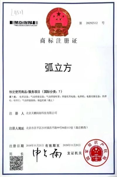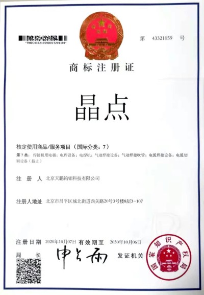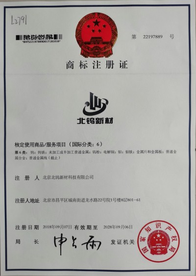 北钨新材图文商标注册证书 晶点商标注册证书 弧立方商标注册证