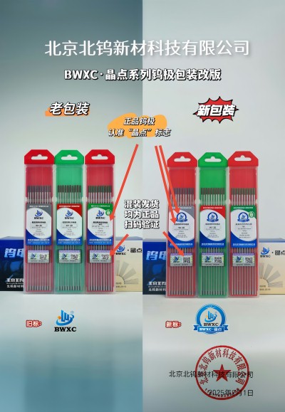 为了和市场上众多同行竞品区分更加清晰明确,方便客户认清和选用我公司BWXC·晶点系列钨电极产品,从即日起,特对我公司BWXC·晶点系列钨电极产品包装做如下升级改版,具体见下图所示。