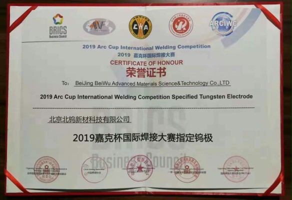 2019年9月4日-9月9日,2019一带一路暨金砖国家技能发展与技术创新大赛暨未来技能挑战赛于廊坊固安成功举办!北钨新材凭借过硬的产品质量再次被大赛组委会确定为“大赛指定钨电极”。