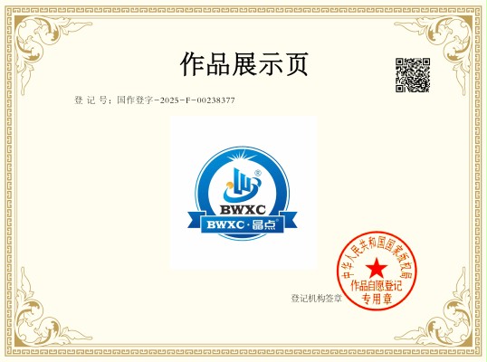2025年08月07日, “BWXC•晶点” 组合logo标识正式获得国家版权局颁发的《作品登记证书》。
