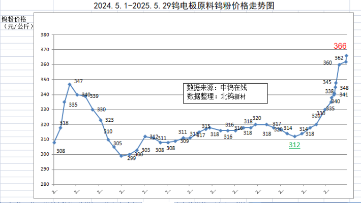 附:钨原料价格走势(数据来源:中钨在线;整理:北钨新材)