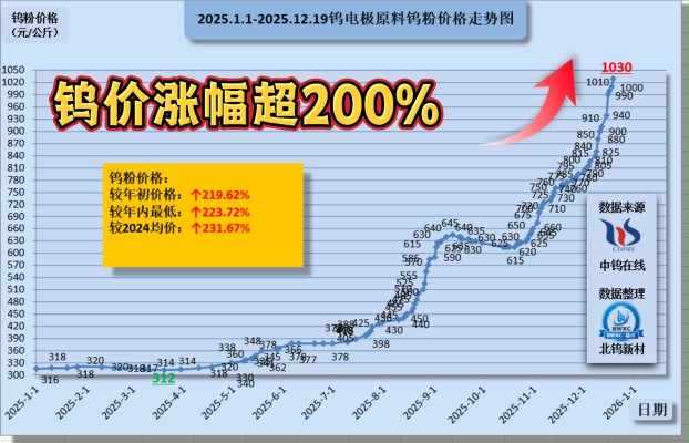 钨市风云 | 一周暴涨超12%,全年涨幅超200%!