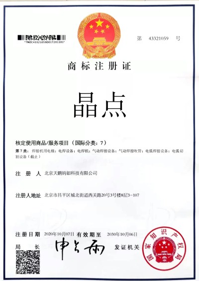 北钨新材注册证书 BWXC注册证书 晶点注册证书1