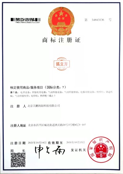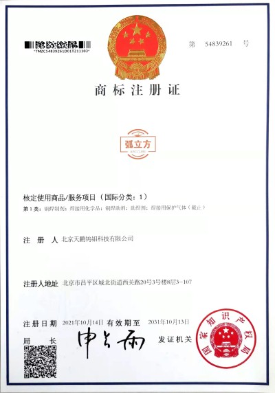 北钨新材公司旗下产品商标均已获得国家知识产权商标注册证书或商标使用授权,并且根据企业发展需要进行必要的商标储备注册和侵权防御注册,以下为商标注册部分证书: